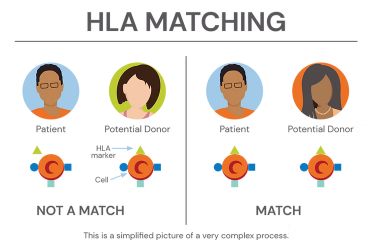Many may think that matching is based on having a similar blood type; however, it is based on human leukocyte antigens (HLA). HLA are proteins—or markers in your body.